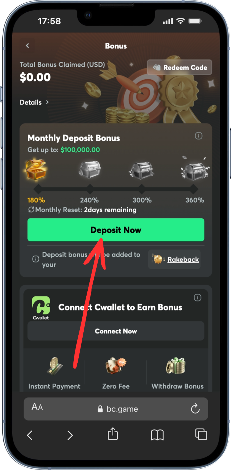 Once your transaction is confirmed, the BC Game welcome bonus will be automatically calculated and added to your “Locked BCD” dashboard.