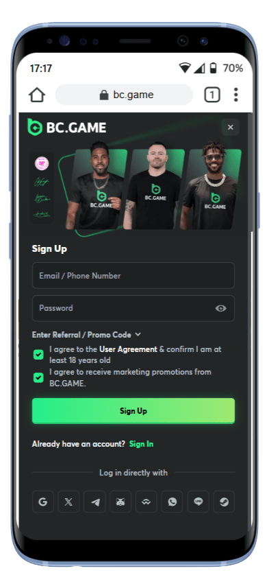 Hit up BC.Game and create an account with your email or crypto wallet. It’s quick, like a minute tops.