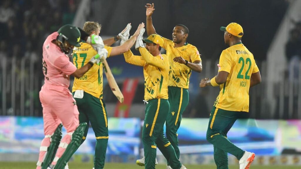 টস জিতে আগে ব্যাট করে দক্ষিণ আফ্রিকা ৯ উইকেটে ১৯৪ তোলে। ওপেনার রেজা হেনড্রিকস ৪০ বলে ৬০ করেন। টি২০তে প্রত্যাবর্তন করা কুইন্টন ডি কক ১৩ বলে ২৩, অভিষিক্ত টনি ডি জর্জি ১৬ বলে ৩৩ এবং জর্জ লিন্ডে ২২ বলে ৩৬ রান যোগ করেন। পাকিস্তানের হয়ে মোহাম্মদ নওয়াজ ৪ ওভারে ২৬ রানে ৩ উইকেট নেন এবং সবচেয়ে কৃপণ ছিলেন।