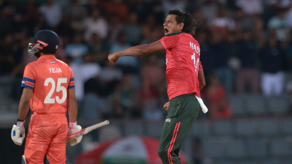 নেদারল্যান্ডস: ১০৩/১০ (১৭.৩ ওভার) | আরিয়ান দত্ত ৩০, বিক্রমজিৎ ২৪; নাসুম ৩/২১, মোস্তাফিজ ২/১৮