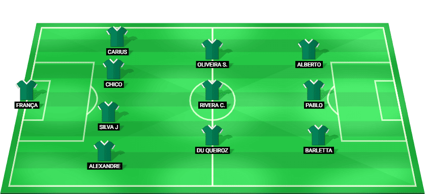 Caique França (GK), Matheus Alexander (DF), Silva J. (DF), Chico (DF), Igor Carius (DF), Du Queiroz (MF), Rivera C. (MF), Oliveira S. (MF), Chrystian Barletta (FW), পাবলো (FW), কার্লোস আলবার্তো (FW)