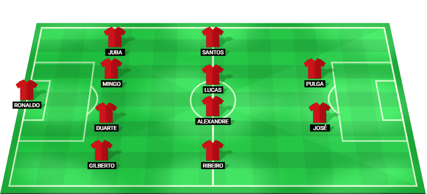 রোনালদো (জিকে), গিলবার্তো (ডিএফ), ডেভিড ডুয়ার্তে (ডিএফ), সান্তি রামোস মিঙ্গো (ডিএফ), লুসিয়ানো জুবা (ডিএফ), এভারটন রিবেইরো (এমএফ), কাইও আলেকজান্দ্রে (এমএফ), জিন লুকাস (এমএফ), আদেমির সান্তোস (এমএফ), উইলিয়ান জোসে (এফডব্লিউ), এরিক পুলগা (এফডব্লিউ)।