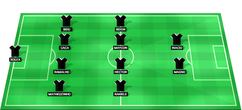 সাউজা (গোলরক্ষক), মাথেউজিনহো (ডিফেন্ডার), রামালহো (ডিফেন্ডার), কাকা (ডিফেন্ডার), বিদু (ডিফেন্ডার), রানিয়েলে (মিডফিল্ডার), হেক্টর (মিডফিল্ডার), মাইকন (মিডফিল্ডার), বিডন (মিডফিল্ডার), ম্যাগনো (ফরোয়ার্ড), ইনাসিও (ফরোয়ার্ড)
