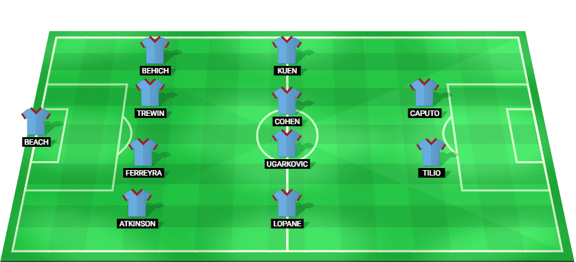 বিচ (জিকে), অ্যাটকিনসন (ডিএফ), ফেরেইরা (ডিএফ), ট্রেউইন (ডিএফ), বেহিচ (ডিএফ), লোপানে (এমএফ), উগারকোভিচ (এমএফ), কোহেন (এমএফ), কুয়েন (এমএফ), টিলিও (এফডব্লিউ), ক্যাপুটো (এফডব্লিউ)।