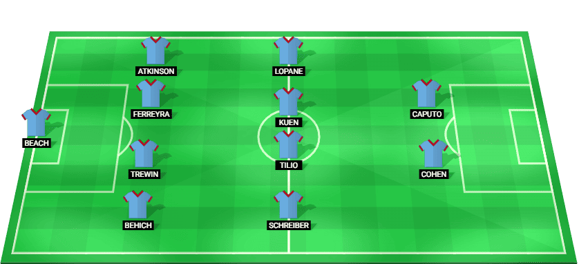 বিচ (GK), Behich (DF), Trewin (DF), Ferreyra (DF), Atkinson (DF), Schreiber (MF), Tilio (MF), Kuen (MF), Lopane (MF), কোহেন (FW), Caputo (FW)।