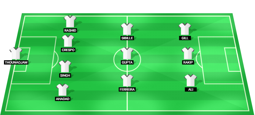 থাউনাওজাম (জিকে), আহাদদ (ডিএফ), সিং (ডিএফ), ক্রেসপো (ডিএফ), রশিদ (ডিএফ), ফেরেরা (এমএফ), গুপ্তা (এমএফ), সিবিলে (এমএফ), আলী (এফডব্লিউ), রাকিপ (এফডব্লিউ), গিল (এফডব্লিউ)