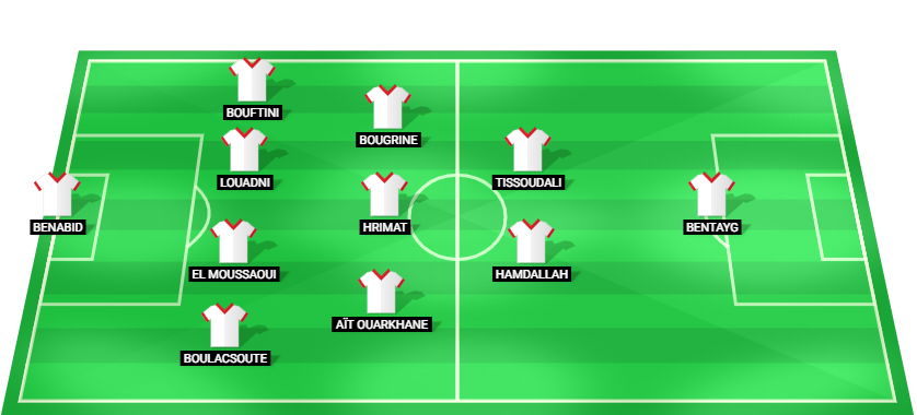 বেনাবিদ (জিকে), বোলাকাসউট (ডিএফ), এল মুসাউই (ডিএফ), লাউদনি (ডিএফ), বোফটিনি (ডিএফ), আইত ওয়ারখানে (এমএফ), হরিমাত (এমএফ), বোগ্রিন (এমএফ), হামদাল্লাহ (এএম), তিসুদালি (এএম), বেনতাইগ (এফডব্লিউ)।
