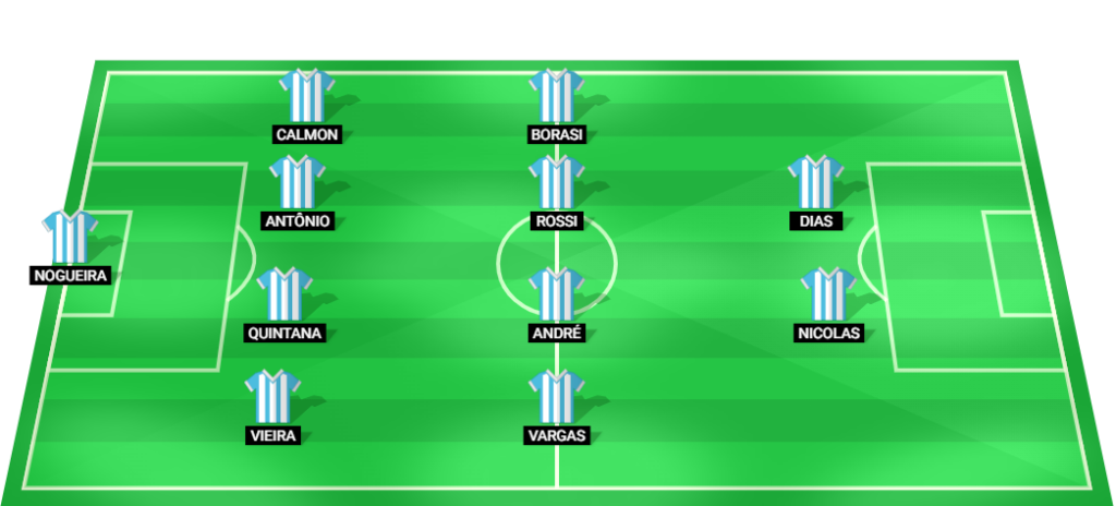 নোগেইরা (জিকে), ভিয়েইরা (ডিএফ), কুইন্তানা (ডিএফ), আন্তোনিও (ডিএফ), কালমন (ডিএফ), ভার্গাস (এমএফ), আন্দ্রে (এমএফ), রোসি (এমএফ), বোরাসি (এমএফ), নিকোলাস (এফডব্লিউ), দিয়াস (এফডব্লিউ)