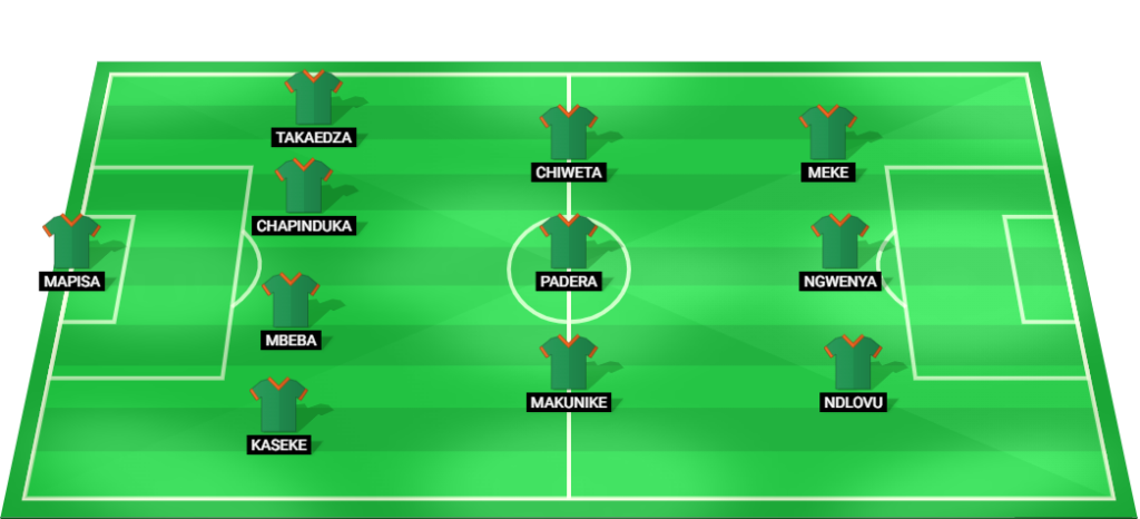মাপিসা (জিকে), কাসেকে (ডিএফ), এমবেবা (ডিএফ), চাপিন্দুকা (ডিএফ), তাকাইedza (ডিএফ), মাকুনিকে (এমএফ), পাডেরা (এমএফ), চিউয়েটা (এমএফ), এনডলোভু (এফডাব্লিউ), এনগোয়েনয়া (এফডাব্লিউ), মেকে (এফডাব্লিউ)।