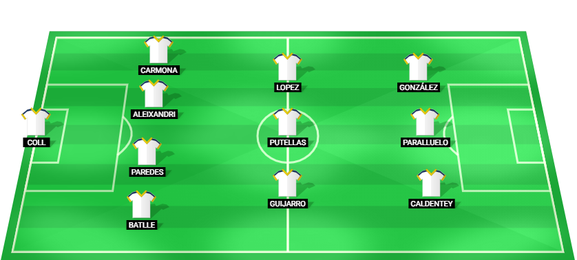 কোল (জি কে), বাতিয়ে (ডি এফ), পারেদেস (ডি এফ), আলেইক্সান্দ্রি (ডি এফ), কারমোনা (ডি এফ), গুইহারো (এম এফ), পুতেয়াস (এম এফ), লোপেজ (এম এফ), কালদেন্তে (এফ ডব্লিউ), পারালুয়েলো (এফ ডব্লিউ), গনসালেস (এফ ডব্লিউ)।