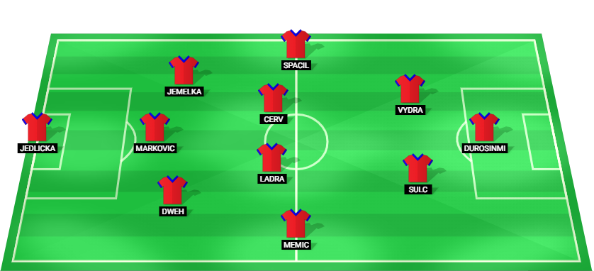 জেডলিচকা (জিকেএ), ডওয়েহ (ডিএফ), মার্কোভিচ (ডিএফ), জেমেলকা (ডিএফ), মেমিচ (এমএফ), লাডরা (এমএফ), চের্ভ (এমএফ), স্পাচিল (এমএফ), শুলচ (এএম), ভিড্রা (এএম), ডুরোসিনমি (এফডব্লিউ)।