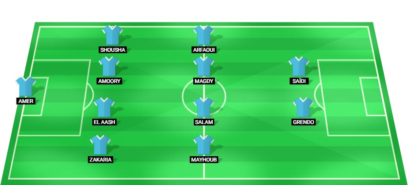 Amer (GK), Zakaria (DF), El Aash (DF), Amoory (DF), Shousha (DF), Mayhoub (MF), Salam (MF), Magdy (MF), Arfaoui (MF), Grendo (FW), Saïdi (FW).