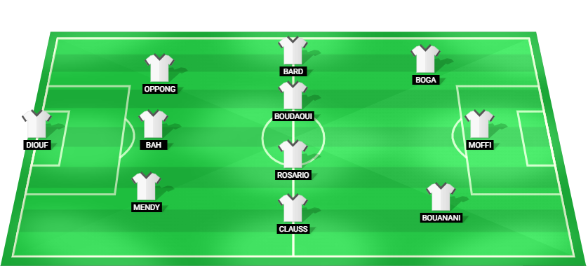 Diouf (GK), Mendy (DF), Bah (DF), Oppong (DF), Clauss (MF), Rosario (MF), Boudaoui (MF), Bard (MF), Bouanani (FW), Moffi (FW), Boga (FW)
