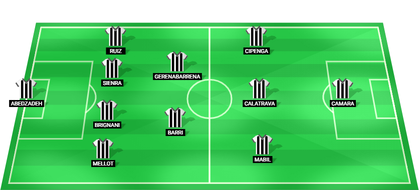 Abedzadeh (GK), Mellot (DF), Brignani (DF), Sienra (DF), Ruiz (DF), Barri (MF), Gerenabarrena (MF), Mabil (AM), Calatrava (AM), Cipenga (AM), Camara (FW)