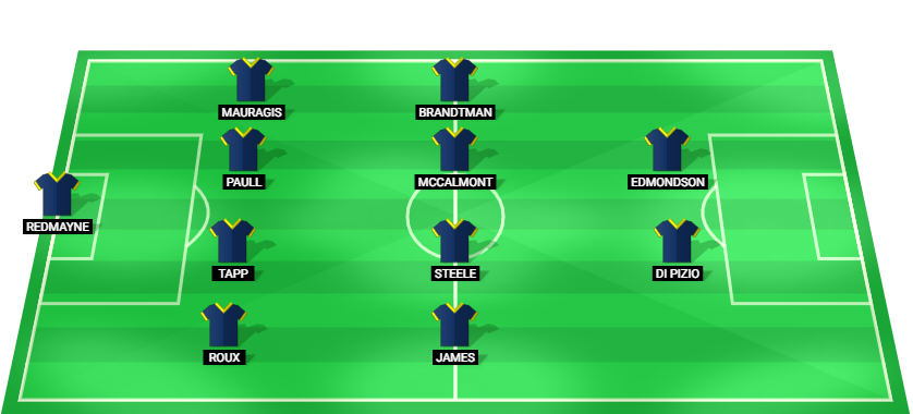 Redmayne (GK), Roux (DF), Tapp (DF), Paull (DF), Mauragis (DF), James (MF), Steele (MF), McCalmont (MF), Brandtman (MF), Di Pizio (FW), Edmondson (FW).