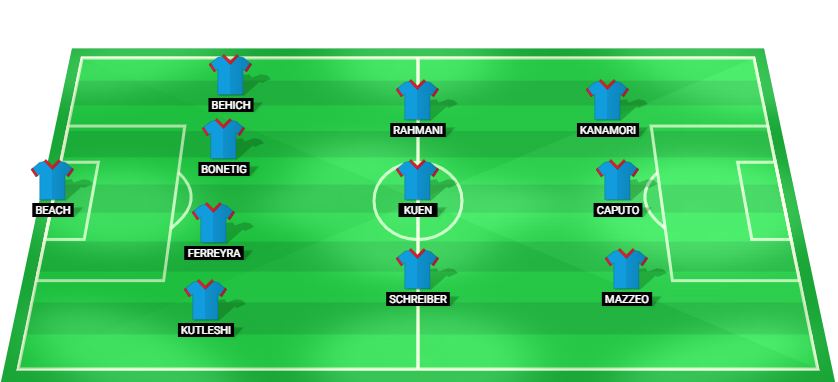 Beach (GK), Kutleshi (DF), Ferreyra (DF), Bonetig (DF), Behich (DF), Schreiber (MF), Kuen (MF), Rahmani (MF), Mazzeo (FW), Caputo (FW), Kanamori (FW).