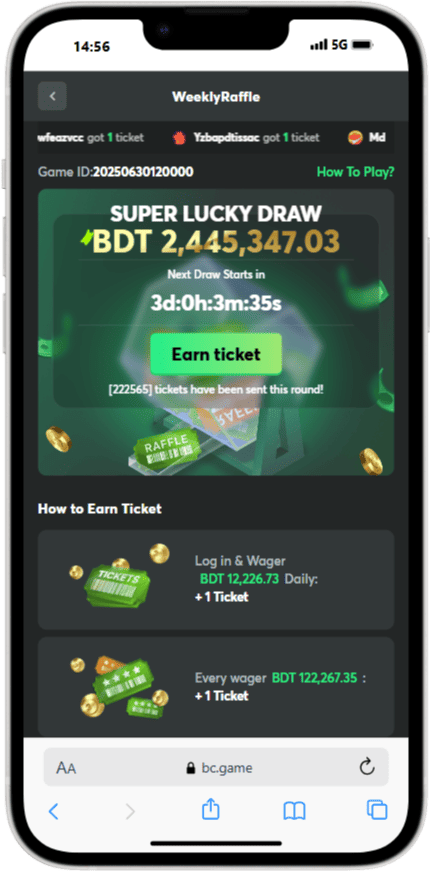 Earning tickets BC Game is straightforward, tied directly to your activity on the platform. Whether you’re spinning slots or betting on sports, your regular gameplay can rack up tickets for the Weekly Raffle. Below is a clear list of how to collect them, with their mechanics: