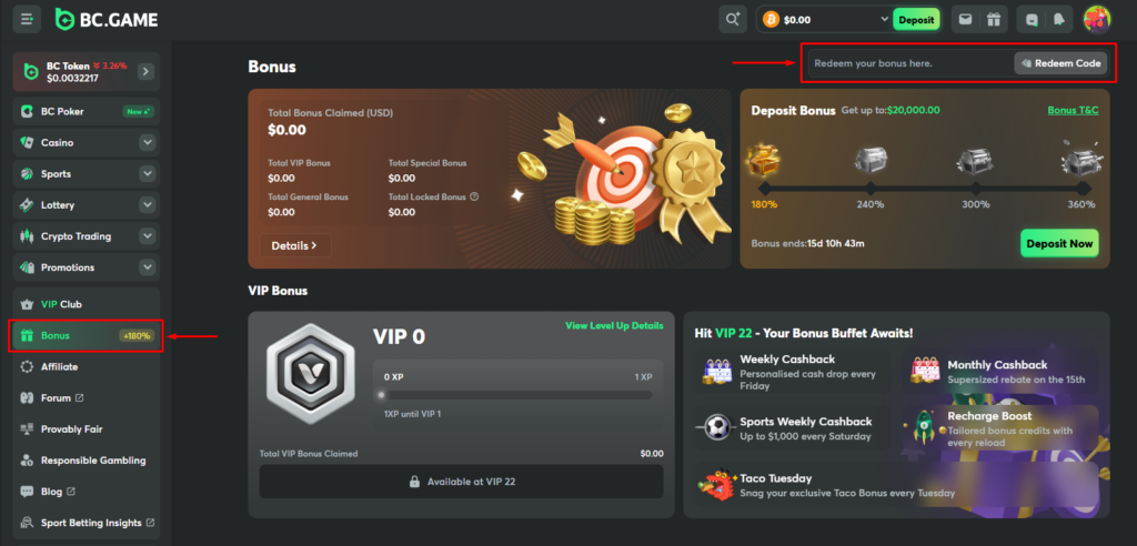 You can redeem BC Game shitcodes directly on BC.Game’s platform, specifically in the “Bonus” section of your account dashboard. After logging in, navigate to this area, enter the code in the designated field, and click “Redeem Bonus Code” to activate it. These codes work across various gaming options, including slots, live casino games, and sports betting.