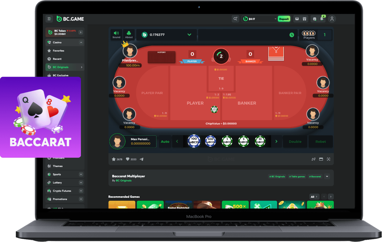 Inspiration and timeline. Modern casino baccarat (often called punto banco) trims the rules down to mechanical draws and clear payouts, which translates well to phones and the web. BC.Game added digital and live tables in recent years; by 2025 the game is available on both web and app with the same wallet and fast settlement. Digital variants in BC Originals expose provably fair elements for transparency; live tables follow provider rules with visible shoe counts and history panels.