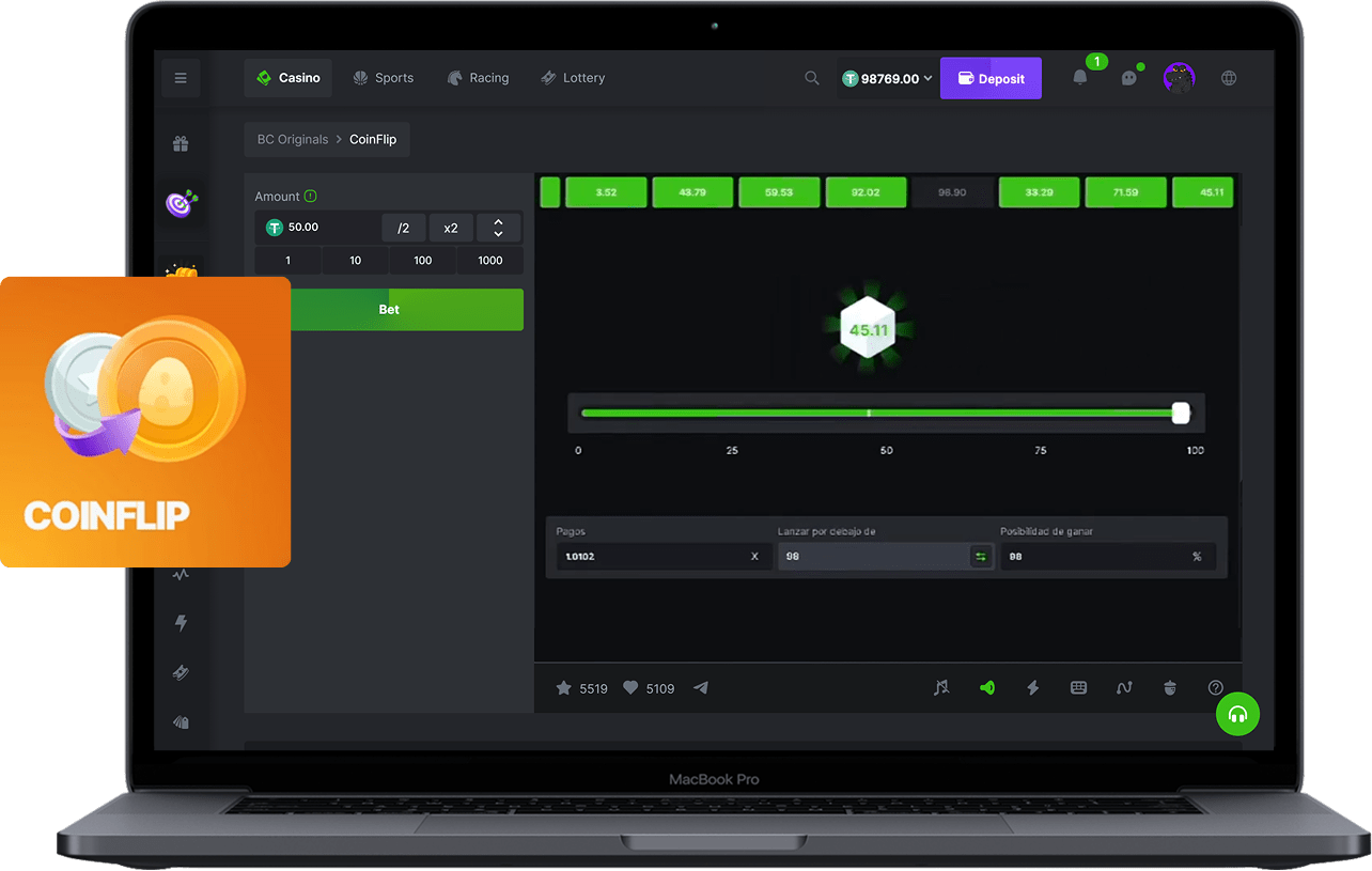 BC.Game offers bonuses like welcome matches, daily lucky spins, and task-based rewards that can be used to boost your Coinflip online bet, subject to terms.