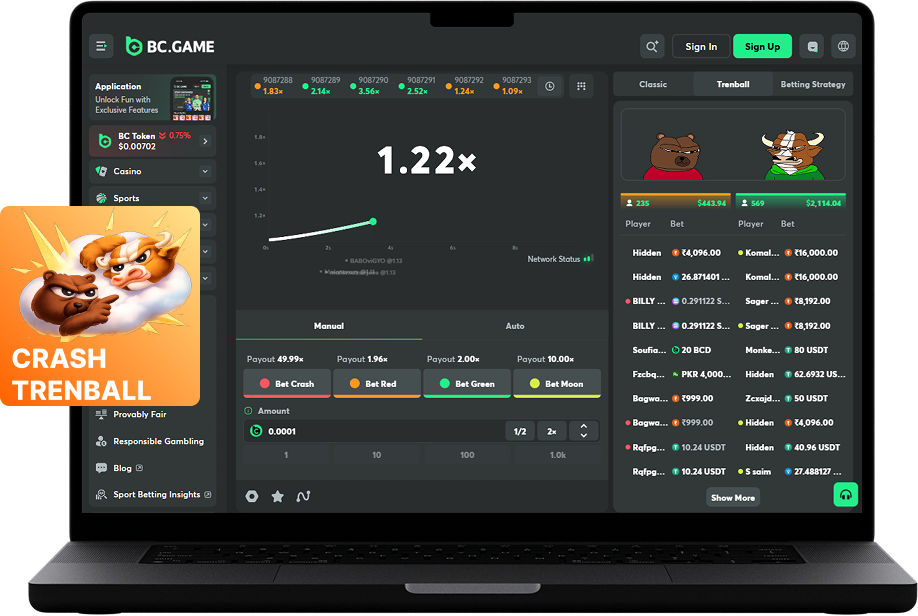 This mode is built on the Crash format but adds a prediction layer that changes the rhythm of play. Rather than chasing a manual cash out on a rising curve, you choose an outcome before the round begins and let the result settle once the multiplier reaches its endpoint. The concept is easy to follow from the first round, yet it still gives enough depth for players who enjoy comparing risk profiles and payout ratios. That balance between simplicity and tension is what makes the BC Game Crash Trenball game feel fresh. The game also fits naturally into the wider BC.Game platform. We offer a large casino lobby, original titles, crypto friendly gaming, mobile support, and ongoing promotions that make fast round formats more practical over longer sessions. Players who prefer short decisions and visible probabilities usually respond well to this kind of setup. You can join quickly, understand the market in a minute, and start shaping your approach without having to decode a complicated feature map. That direct structure is one reason BC Game trenball stands out inside our original games portfolio.