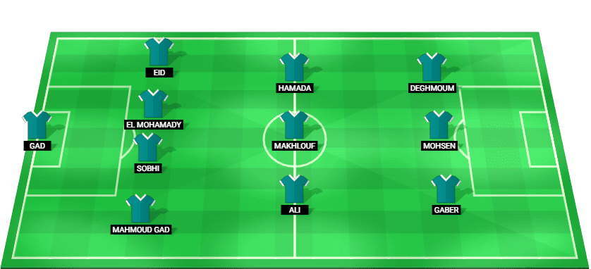 मोहम्मद अल शेनावी (जीके), अहमद कौका (डीएफ), रामी राबिया (डीएफ), यासर इब्राहिम (डीएफ), करीम एल डेब्स (डीएफ), मारवान अटेया (एमएफ), इमाम अशौर (एमएफ), अम्र एल सोलिया (एमएफ), ताहेर मोहम्मद (एफडब्ल्यू), वेसम अबू अली (एफडब्ल्यू), अचरफ बेनचार्की (एफडब्ल्यू)।