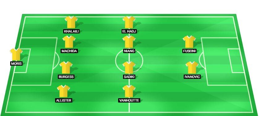 मोरिस (जीके), मैक एलीस्टर (डीएफ), बर्गेस (डीएफ) माचिडा (डीएफ), खलैली (डीएफ), वानहौटे (एमएफ), सादिकी (एमएफ), नियांग (एमएफ) ऐट एल हैज (एमएफ), इवानोविक (एफडब्ल्यू), फुसेनी (एफडब्ल्यू)