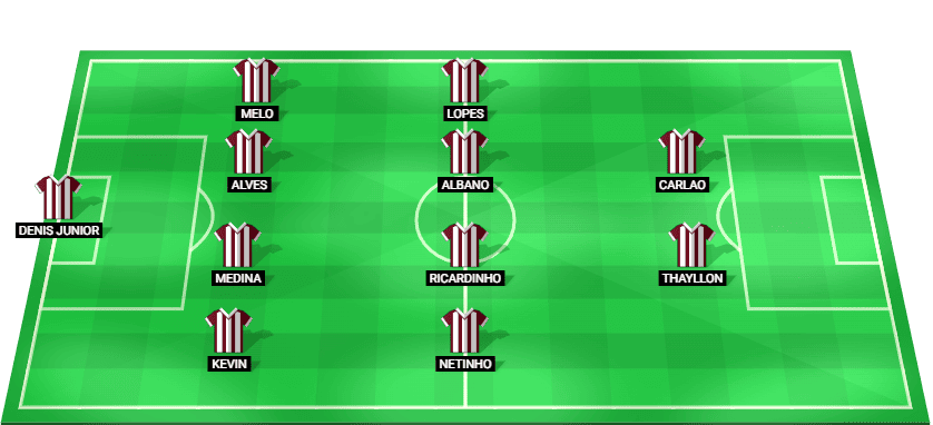 - डेनिस जूनियर (जीके), केविन (डीएफ), गुस्तावो मदीना (डीएफ), रोनाल्डो अल्वेस (डीएफ), एरिक मेलो (डीएफ), नेटिन्हो (एमएफ), रिकार्डिन्हो (एमएफ), अल्बानो (एमएफ), थियागो लोप्स (एमएफ), थायलॉन (एफडब्ल्यू), कार्लाओ (एफडब्ल्यू)