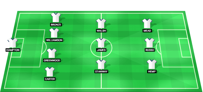 हन्ना हैम्पटन (जीके), जेस कार्टर (डीएफ), एलेक्स ग्रीनवुड (डीएफ), लिआ विलियमसन (डीएफ), लुसी ब्रोंज (डीएफ), जॉर्जिया स्टैनवे (एमएफ), लॉरेन जेम्स (एमएफ), केइरा वाल्श (एमएफ), लॉरेन हेम्प (एफडब्ल्यू), एलेसिया रूसो (एफडब्ल्यू), बेथ मीड (एफडब्ल्यू)