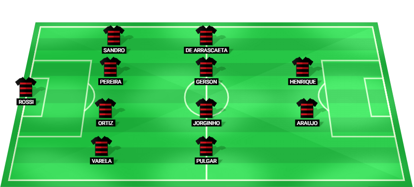 फ्लामेंगो की संभावित शुरुआती एकादश फिलीप लुइस के नेतृत्व में उनकी आक्रामक शैली और रक्षात्मक मजबूती को दर्शाती है।