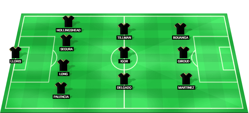 लोरिस (जीके), पलेंसिया (डीएफ), लॉन्ग (डीएफ), सेगुरा (डीएफ), हॉलिंग्सहेड (डीएफ), डेलगाडो (एमएफ), इगोर (एमएफ), टिलमैन (एमएफ), मार्टिनेज (एफडब्ल्यू), गिरौद (एफडब्ल्यू), बौआंगा (एफडब्ल्यू)।