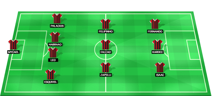 माइकेल (जीके), एस्क्विवेल (डीएफ), लियो (डीएफ), हाबराओ (डीएफ), पलासियोस (डीएफ), जैपेली (एमएफ), फाल्काओ (एमएफ), फेलिपिन्हो (एमएफ), इसाक (एफडब्ल्यू), कार्डेक (एफडब्ल्यू), फर्नांडो (एफडब्ल्यू)।