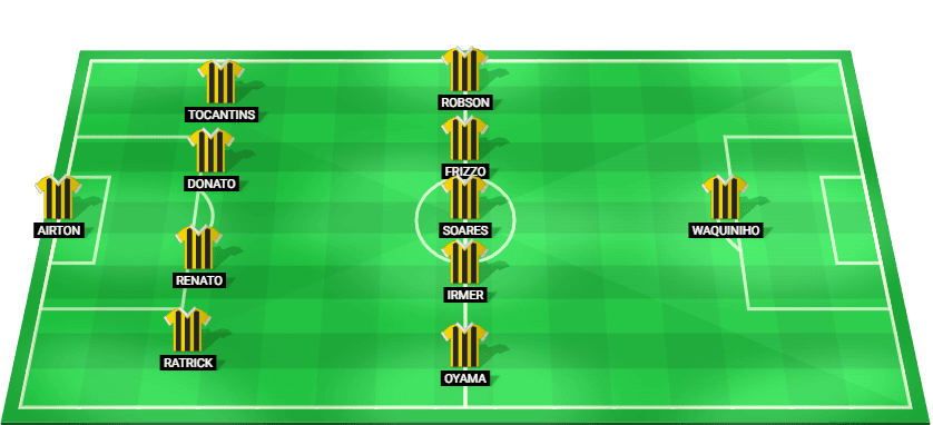 एयरटन (जीके), रैट्रिक (डीएफ), रेनैटो (डीएफ), डोनाटो (डीएफ), टोकैंटिन्स (डीएफ), ओयामा (एमएफ), इरमेर (एमएफ), सोरेस (एमएफ), फ्रिजो (एमएफ), रॉबसन (एमएफ), वाक्विनीहो (एफडब्ल्यू)।