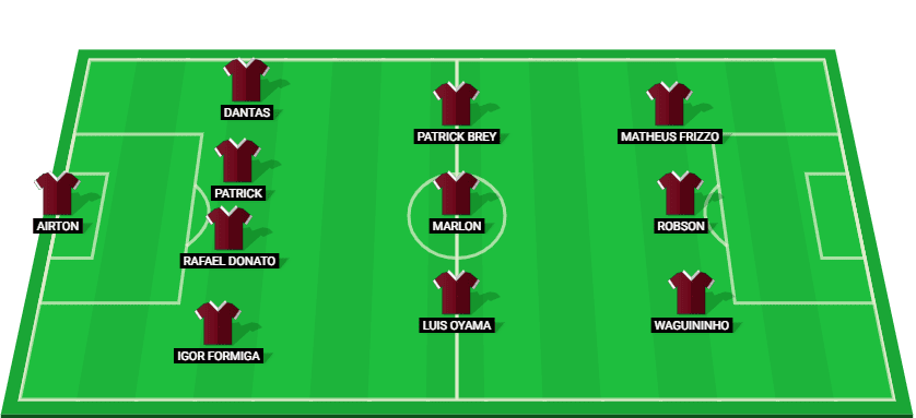 एयरटन (जीके), इगोर फॉर्मिगा (डीएफ), राफेल डोनाटो (डीएफ), पैट्रिक (डीएफ), डेंटास (डीएफ), लुइस ओयामा (एमएफ), मार्लोन (एमएफ), पैट्रिक ब्रे (एमएफ), वागुइनिन्हो (एफडब्ल्यू), रॉबसन (एफडब्ल्यू), मैथ्यूस फ्रिजो (एफडब्ल्यू)।