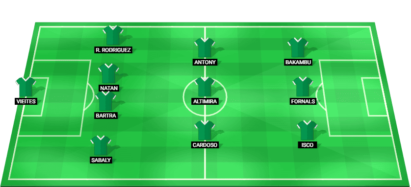 रियल बेटिस की संभावित शुरुआती लाइनअप: