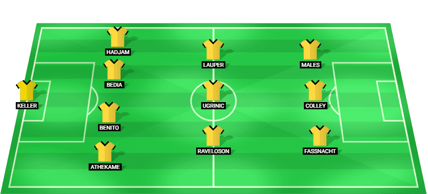 केलर (जीके), अथेकेम (डीएफ), बेनिटो (डीएफ), बेदिया (डीएफ), हडजाम (डीएफ), रेवेलोसन (एमएफ), उग्रनिक (एमएफ), लॉपर (एमएफ), फास्नाचट (एफडब्ल्यू), कोली (एफडब्ल्यू), मेल्स (एफडब्ल्यू)।