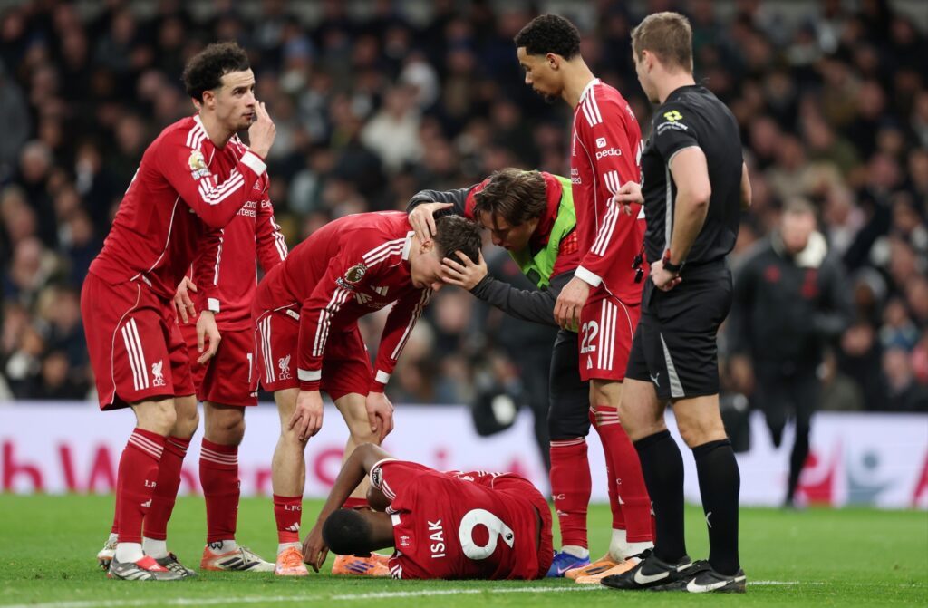 Alexander Isak scored with a clinical finish from Florian Wirtz’s pass, but Micky van de Ven’s challenge as he struck the ball left the striker on the turf clutching his leg.