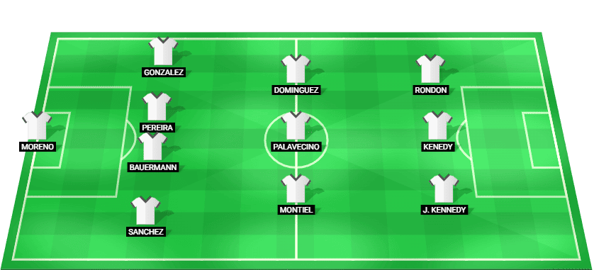 Moreno (GK), Sanchez (DF), Bauermann (DF), Pereira (DF), Gonzalez (DF), Montiel (MF), Palavecino (MF), Dominguez (MF), J. Kennedy (FW), Kenedy (FW), Rondon (FW).