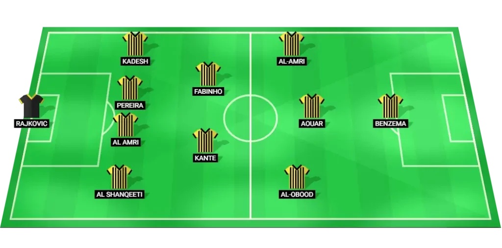 Al Ittihad Expected Lineup (4-2-3-1): Predrag Rajkovic (GK), Muhannad Al Shanqeeti (DF), Abdulelah Al Amri (DF), Danilo Pereira (DF), Hassan Kadesh (DF), N’Golo Kante (MF), Fabinho (MF), Abdulrahman Al-Obood (MF), Houssem Aouar (MF), Saleh Al-Amri (MF), Karim Benzema (FW).