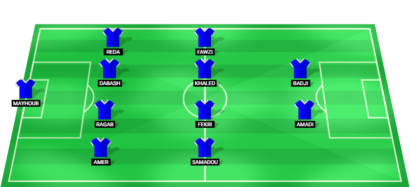 Mayhoub (GK), Amer (DF), Ragab (DF), Dabash (DF), Reda (DF), Samadou (MF), Fekri (MF), Khaled (MF), Fawzi (MF), Amadi (FW), Badji (FW).