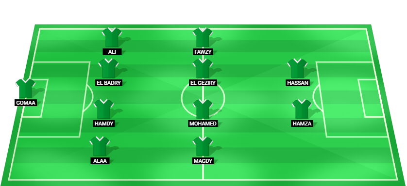 Gomaa (GK), Alaa (DF), Hamdy (DF), El Badry (DF), Ali (DF), Magdy (MF), Mohamed (MF), El Geziry (MF), Fawzy (MF), Hamza (FW), Hassan (FW).