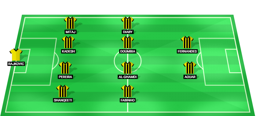 Rajkovic (GK), Shanqeeti (DF), Pereira (DF), Kadesh (DF), Mitaj (DF), Fabinho (MF), Al-Ghamdi (MF), Doumbia (MF), Diaby (FW), Aouar (FW), Fernandes (FW)