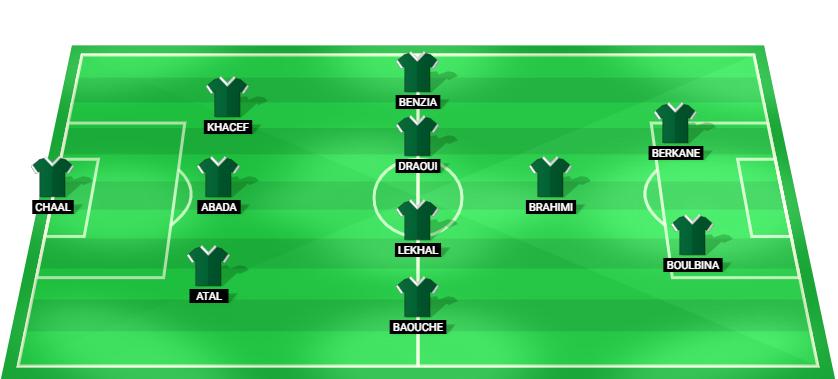 Chaal (GK), Atal (DF), Abada (DF), Khacef (DF), Baouche (MF), Lekhal (MF), Draoui (MF), Benzia (MF), Brahimi (AM), Boulbina (FW), Berkane (FW).