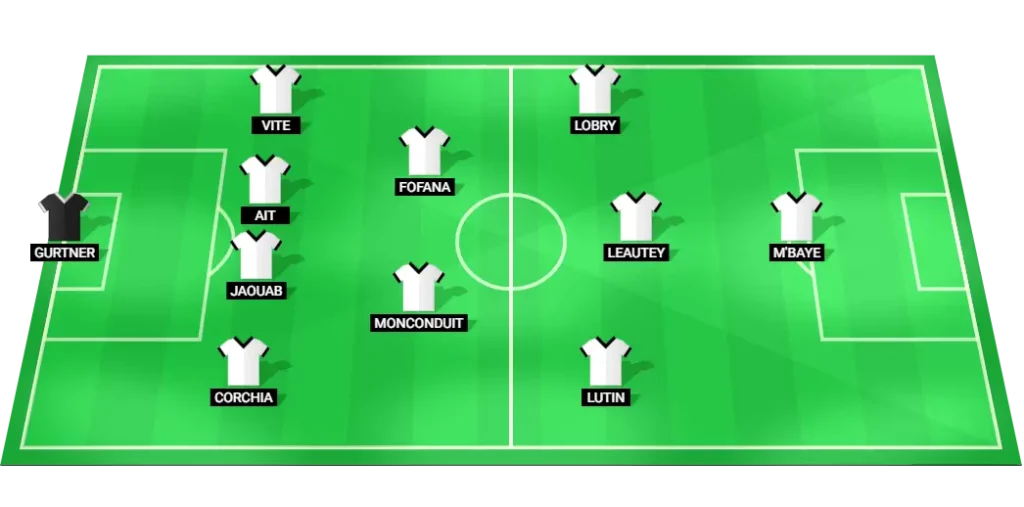 Amiens are expected to field a competitive XI, relying on their home form: Gurtner (GK), Vite (DF), Jaouab (DF), Ait (DF), Corchia (DF), Fofana (MF), Monconduit (MF), Lutin (MF), Leautey (MF), Lobry (MF), M’Baye (FW).
