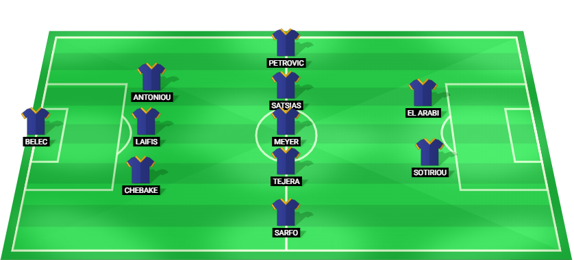 APOEL’s boss Manolo Jiménez will likely opt for a balanced setup, despite injury concerns, to counter Apollon’s home strength: Belec (GK), Chebake (DF), Laifis (DF), Antoniou (DF), Sarfo (MF), Tejera (MF), Meyer (MF), Satsias (MF), Petrovic (MF), Sotiriou (FW), El Arabi (FW).