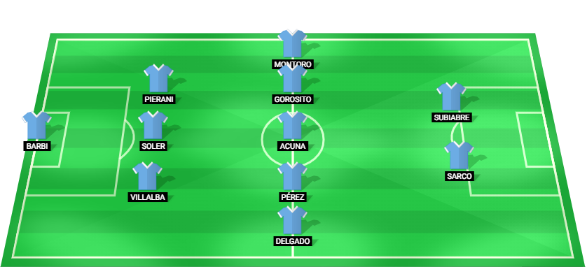 Barbi (GK), Villalba (DF), Soler (DF), Pierani (DF), Delgado (MF), Pérez (MF), Acuna (MF), Gorosito (MF), Montoro (MF), Sarco (FW), Subiabre (FW)