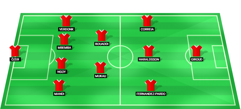 Ozer (GK), Mandi (DF), Ngoy (DF), Mbemba (DF), Verdonk (DF), Mukau (MF), Bouaddi (MF), Fernandez-Pardo (AM), Haraldsson (AM), Correia (AM), Giroud (FW)