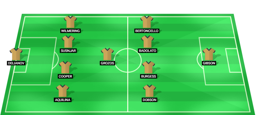 Delianov (GK), Aquilina (DF), Cooper (DF), Susnjar (DF), Wilmering (DF), Grozos (MF), Dobson (AM), Burgess (AM), Badolato (AM), Bertoncello (AM), Gibson (FW).