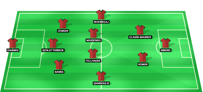 Dahmen (GK), Banks (DF), Schlotterbeck (DF), Zesiger (DF), Giannoulis (MF), Fellhauer (MF), Massengo (MF), Rexhbecaj (MF), Komur (MF), Claude-Maurice (MF), Ribeiro (FW).