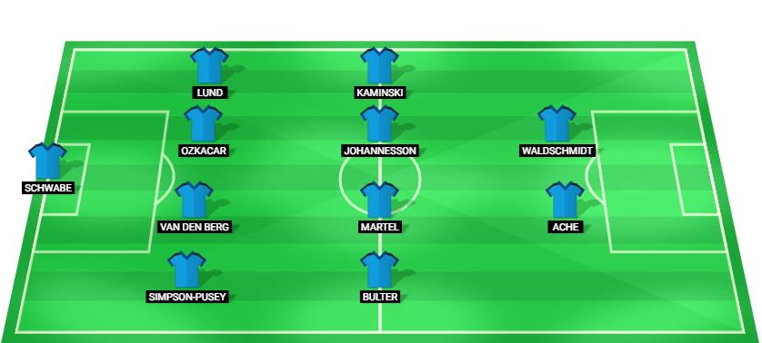 Schwabe (GK), Simpson-Pusey (DF), Van den Berg (DF), Ozkacar (DF), Lund (DF), Bulter (MF), Martel (MF), Johannesson (MF), Kaminski (MF), Ache (FW), Waldschmidt (FW).